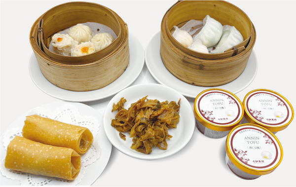 名鉄菜館の点心師が一つ一つ心を込めて手作りした自慢の点心5種と、当店人気の搾菜、当店オリジナルの杏仁アイスを入れたセットをご用意しました。